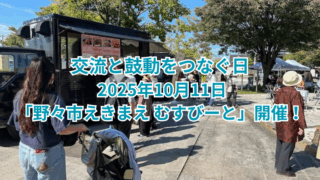 10月11日、野々市えきまえむすびーと2025 AUTUMNが盛況に終了。約1,200人が参加し、地域協働を重視。初参加の能登町が地元農産物を販売し、すべて完売。多彩なステージや展示もあり、参加者同士の温かな交流が生まれた。